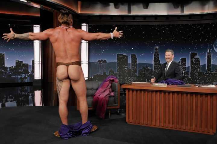 现年43岁、“海王”杰森·莫玛已经向世人展示了,即使他不扮演“超人”,他仍然可以吸引所有人的目光。在出席《吉米夜现场》的一段视频时,她脱下衣服,大方地展示自己的屁股,这是一件夏威夷的经典服装。