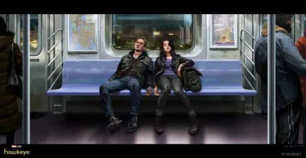 《鹰眼》概念设计图曝光,鹰眼和凯特在地铁睡着,凯特新装备亮相
