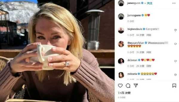 《银护》系列导演詹姆斯·冈恩与演员詹尼佛·霍兰德订婚。男方发ins分享了女方戴着戒指的照片,THR等媒体此后确认了订婚消息。霍兰德出演过《魔童》等,与冈恩结识后合作了《和平使者》《X特遣队:全员集结》,并在作品中饰演了哈考特。