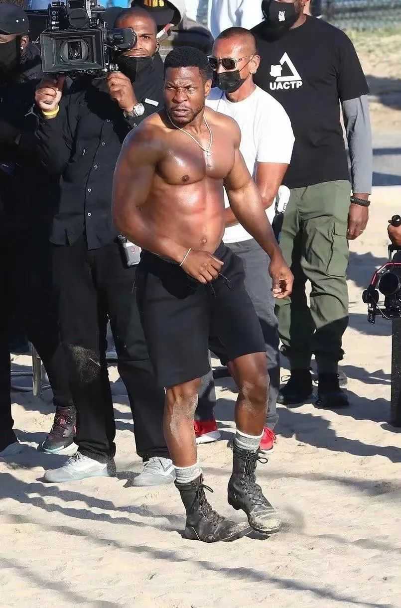 此时,突然又想到了征服者康扮演者“乔纳森·梅杰斯”拍摄《奎迪3》期间的一张片场照:
