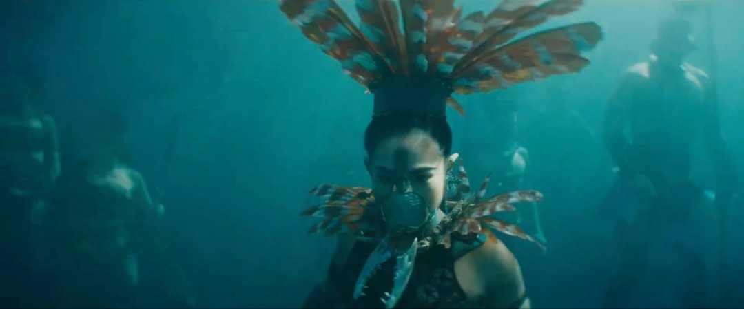 在葬礼的画面中,还穿插了纳摩的镜头,我们可以看到纳摩正正在修缮一面壁画,结合此前演员的采访,纳摩在影片中的设定发生了一些改变,他所统治的国家不再是亚特兰蒂斯,而是源自玛雅文化的水底王国塔罗肯。他所修缮的也正是印有玛雅诸神图腾的壁画。