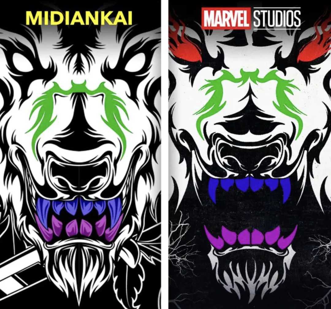 迪士尼+的《暗夜狼人》海报(在特别节目首次亮相前于9月公开发布)中的许多元素与他封面中的核心设计几乎相同,特别是狼的鼻子、牙齿和下巴,甚至Midiankai还直接展示了自己在当初进行“狼头”设计时所进行的一些细节设定,并且也展示了,其中一个小的可作为“证据”的细节!