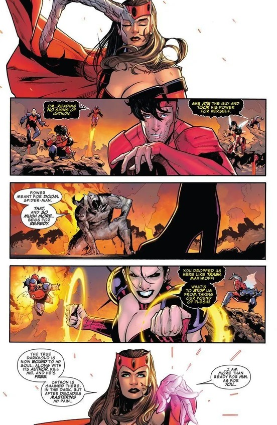 正是因为这样,旺达才能够战胜自己的魔力,在冥神西索恩的一次进攻中,旺达面对西索恩,将自己的身躯融入到了旺达的体内,西索恩还想着自己能够夺舍旺达,却没想到现在的旺达已经完全不同了。
