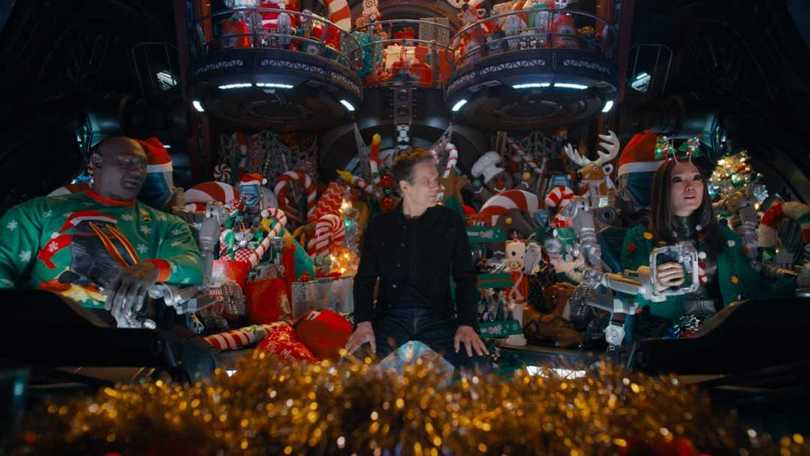 凯文·贝肯在知道了事情的前因后果之后,也选择了留在这里过圣诞,他还和异星人的乐团合唱了一首《Here It Is Christmas Time》,这首歌很好听,很感人。