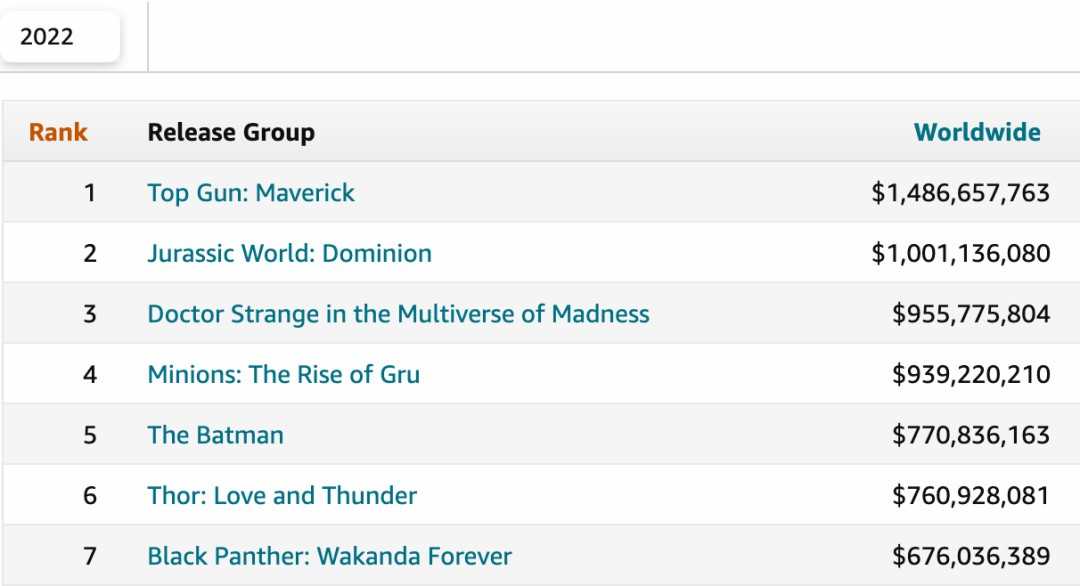 《黑豹2》在全球票房已达6.76亿美元,暂列第2022位。