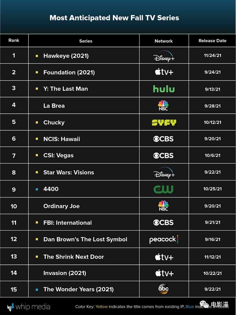 Whip Media的数据表明,《鹰眼》目前是秋季档最受欢迎的剧集,尽管它要等到11月末才会播出。