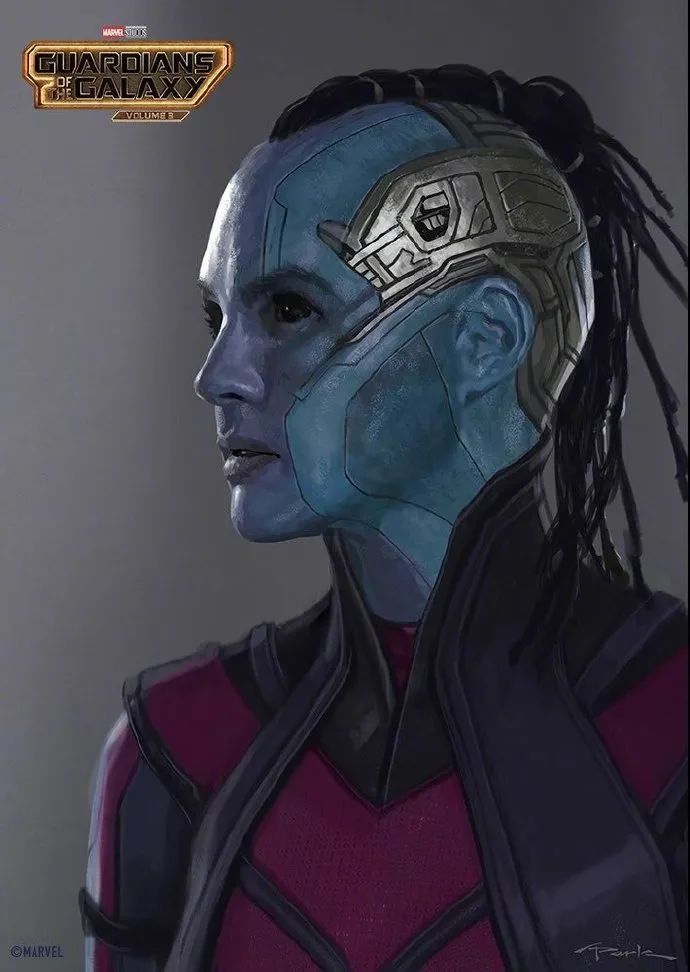 首先是星云的早期造型,其中凯伦吉兰终于有了头发。但这个设计很快就被放弃了,整体看起来略显违和。然而,滚导还是去掉了星云眼睛部分的金属框架,使其在外观上更加接近人类,更有人性,也更符合电影中人设的要求。