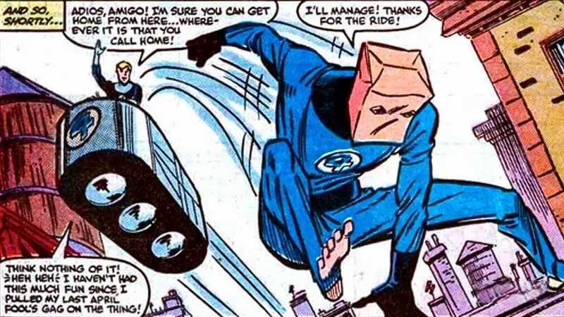 于是霹雳火给了彼得一套旧的备用的神奇四侠战服。