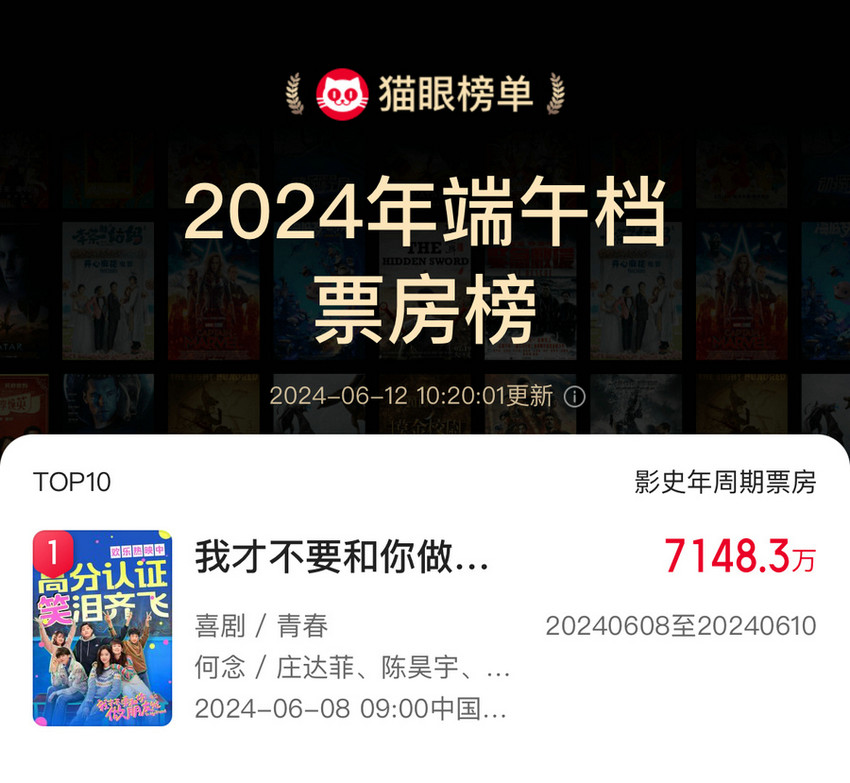随着端午佳节的落幕,中国电影市场也迎来了一份令人瞩目的成绩单。今年的端午档期,总票房达到了惊人的3.7亿元人民币,放映场次更是突破了139万场,创下了中国影史端午档期的新纪录。在这场激烈的票房角逐中,天浩盛世出品的青春喜剧电影《我才不要和你做朋友呢》以其独特的魅力,荣登票房榜首,成为了这个假期的票房冠军。