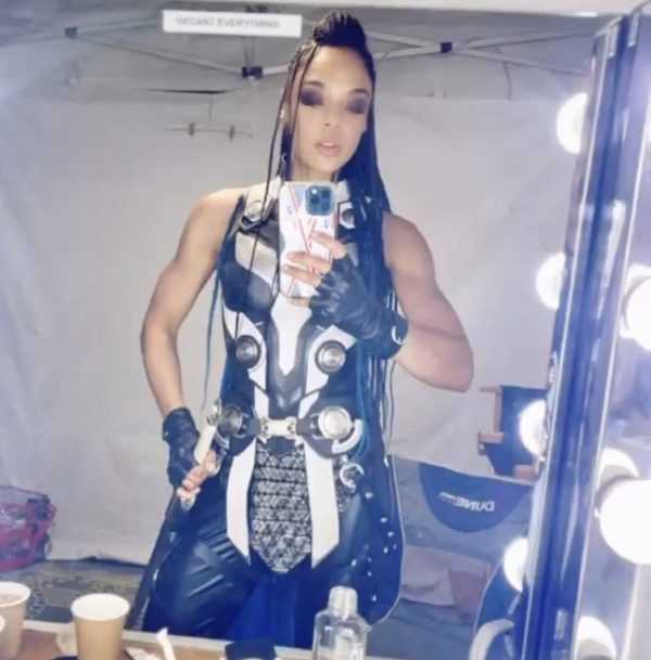日前,备受人们关注的影片《雷神4:爱与雷霆》曝光了全新的片场照。在照片上,泰莎·汤普森所扮演的备受爱戴的女武神,正对镜自拍。她穿上了全新的戏服,一套新设计的战袍。