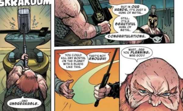 其次,在漫威阿斯加德矮人一族的剧情中,也是借助矮人之口得知了,伏羲剑存在的历史和阿斯加德几乎一样久远,而且即便是铸造了雷神之锤的矮人也完全不能撼动这把剑,直呼他们从未见过这般强大的神器。(其实这把剑在后续的剧情中碎过几次~,直接打脸)