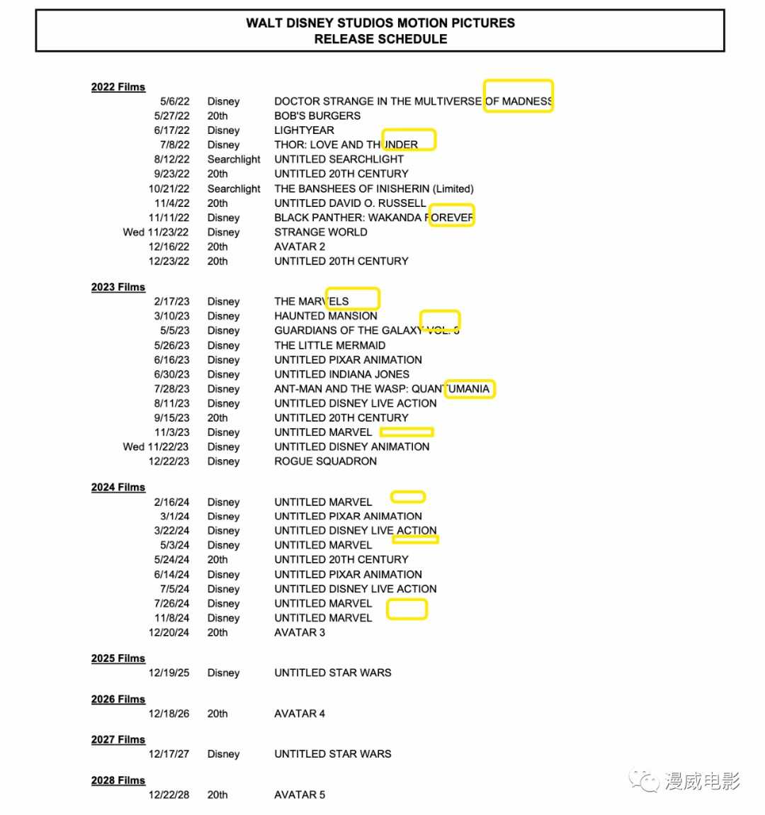 迪士尼发布了从2022年到2028年的电影计划安排。