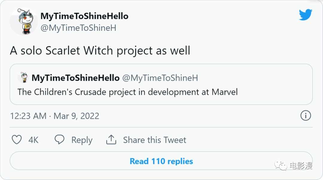 据MyTimetoShineHello爆料,漫威影业希望奥妹在《奇异博士2》之后能再次回归。