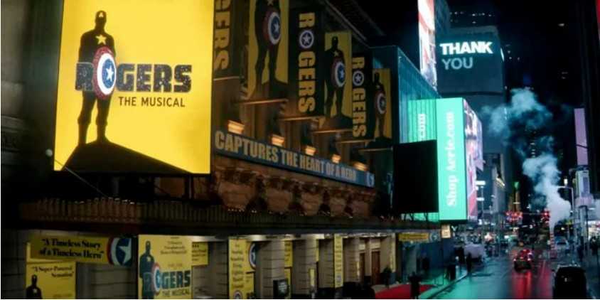 在《蜘蛛侠3》小蜘蛛带着MJ在城市游荡期间,能看到在背景中出现了两个《罗杰斯秀》的广告牌,该音乐剧曾在《鹰眼》中出现,改编自《复联1》的纽约大战,还挺好听。
