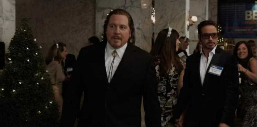 电视上轮播的哈比照片,有一张《钢铁侠3》时闪回的剧照,按照时间线,这张照片得追溯到2000年左右。