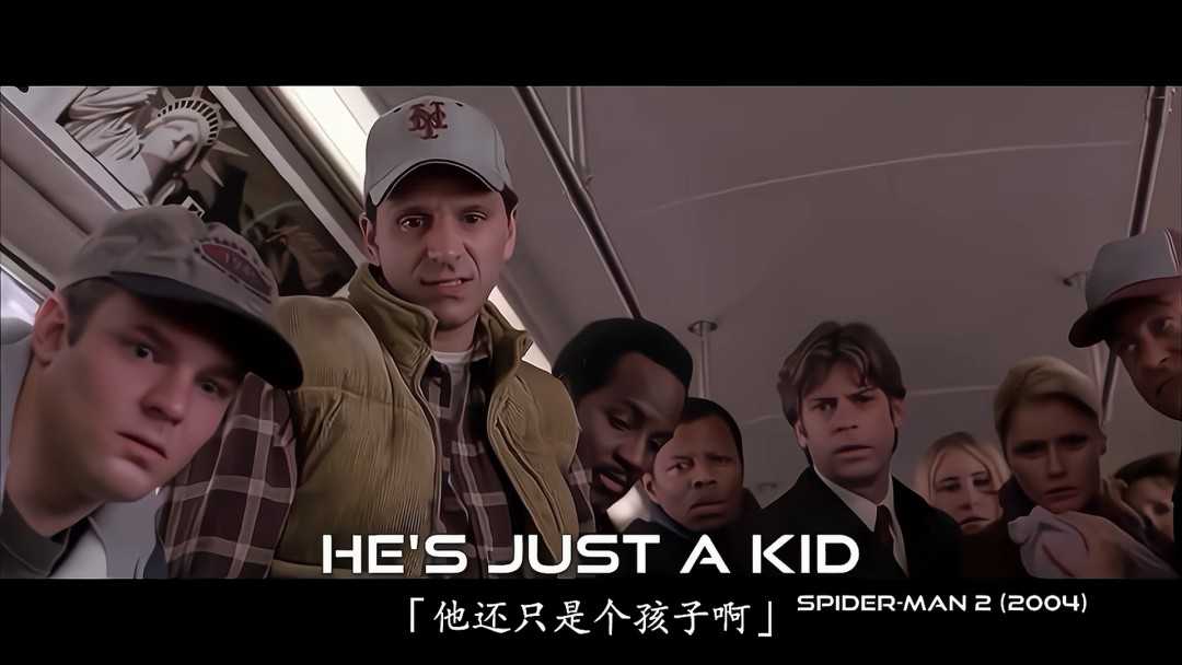 这点跟托比版蜘蛛侠2中,托比奋力救下火车后,面罩被摘下,大家发现他只是一个小伙子,说出了一样的话。