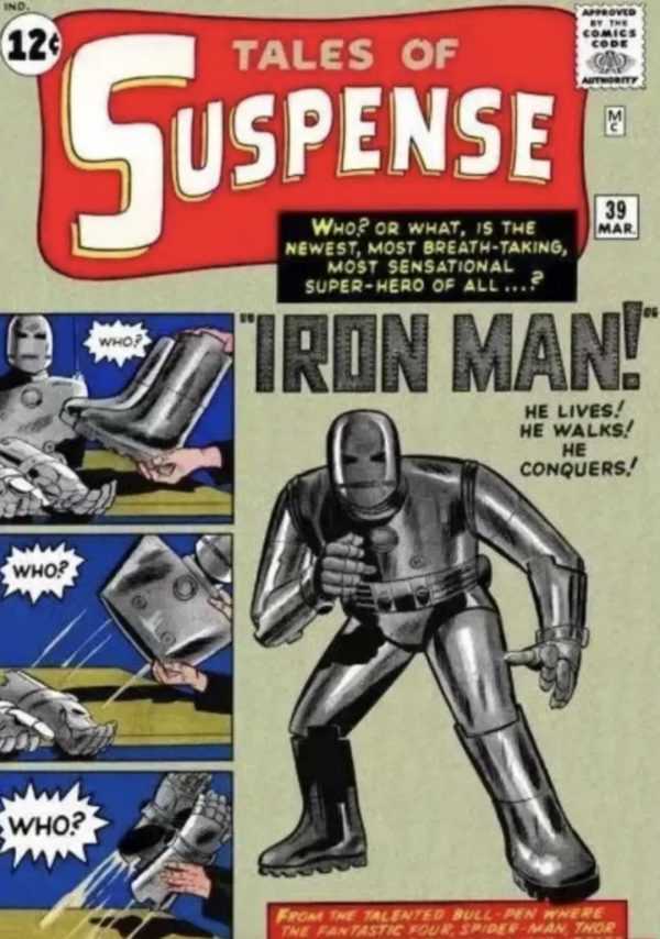 之所以,这本漫画能够被拍出37万+美金的价格,很多程度上就是因为这本漫画是当年“钢铁侠”这一角色第一次出现的实体化漫画版本,当年这本漫画中的钢铁侠的战甲还是近乎“铁罐”姿态。