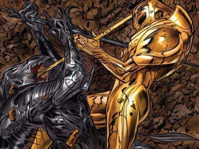 实际上格尔也是因为捡到这把剑才开始开挂屠杀全宇宙的神明的,他的能力都来自于这把黑死剑漫画中的神明之战,拿着黑死剑的格尔对战雷神