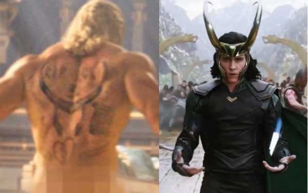 大家为克里斯·海姆斯沃斯好身材“嘶哈嘶哈”的同时,有细心的网友发现,这一幕还藏了一把大刀:雷神裸露的后背上,好像有洛基头盔图样的纹身,和一句“R.I.P LOKI ”。网友纷纷表示:死去的cp突然攻击我!