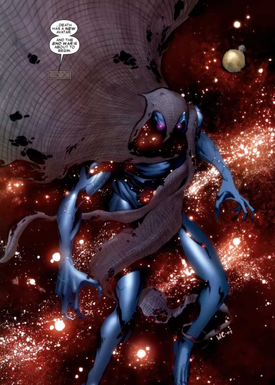 “死亡”,是漫威宇宙死亡属性的具象化,灵魂的主人,掌控宇宙中所有生命灵魂的源头、创造者与操纵者;