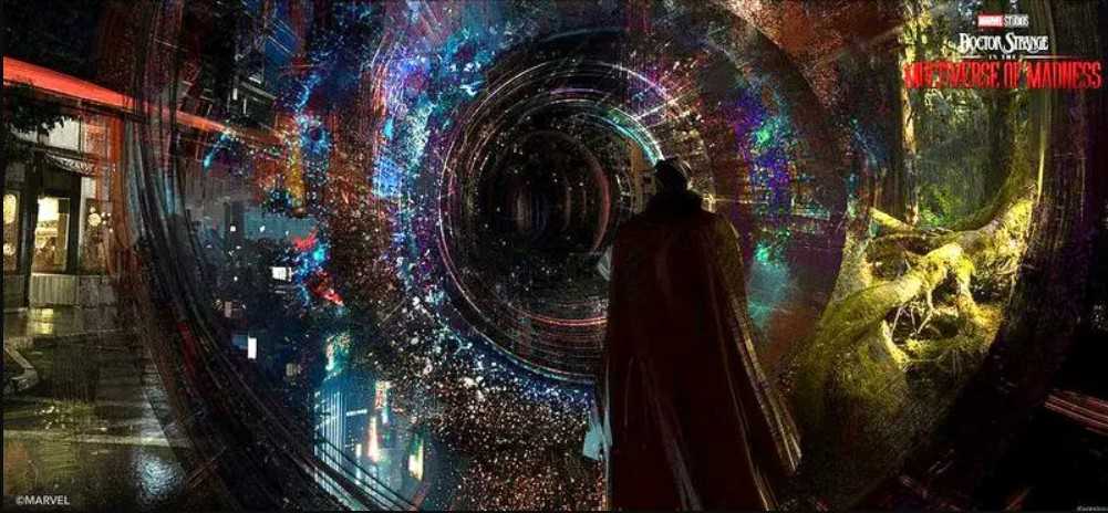 接着,概念艺术家还展示了博士穿过多元宇宙维度虫洞的概念设计图,关于虫洞有许多设计,除了影片展示的五角星外,还有原型和三角形,但都能在里面看到多个宇宙,包括野蛮之地和黑暗维度。