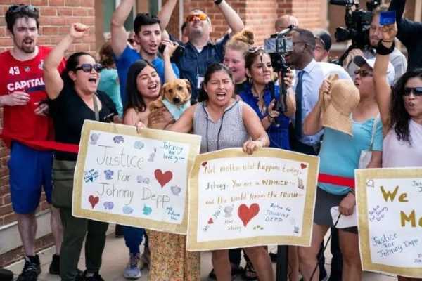 并且在法院宣判结果后,场外等候的粉丝和民众欢庆德普胜利!不过德普当日忙于英国巡演,当天并未现身!