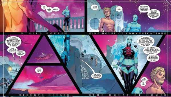 最终他们杀掉了 Mors ,同时也毁掉了星爵生活了一百多年的世界,但这也让星爵想起了他最初的目的,他利用神力打开了维度的大门,回到了主宇宙,在离开前伤心欲绝的 Aradia 对星爵说:“别忘了我们,陌生人,别忘了。”