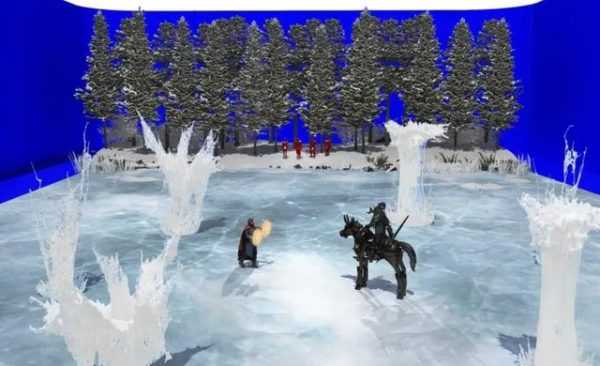 在一同曝光的电影片场布景设计,展示了一个冰冻的湖泊,大概和斯特兰奇的妹妹唐娜·斯特兰奇淹死的湖一样,甚至,在概念场景中,还展现了斯特兰奇与梦魇对峙的场景,这一幕中梦魇骑着马,穿戴和黑暗骑士类似的战甲。