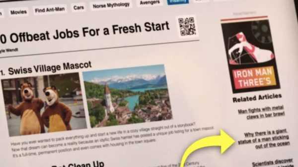 电脑页面上右边的一则消息则是直接提到了「永恒族」电影结局设定“Why there is a giant statue of a man sticking out of the ocean?”(为什么有一个巨大的人像伸出海洋?)