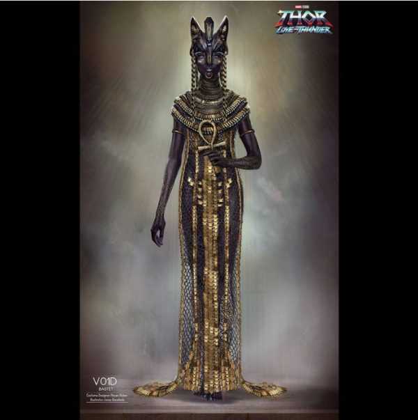 在《雷神4:爱与雷霆》中,漫威向我们展示了万神大会,其中瓦坎达的黑豹女神巴斯特也登场,而今天官方发布了黑豹女神的概念设计图,让我们来看看二者的区别。