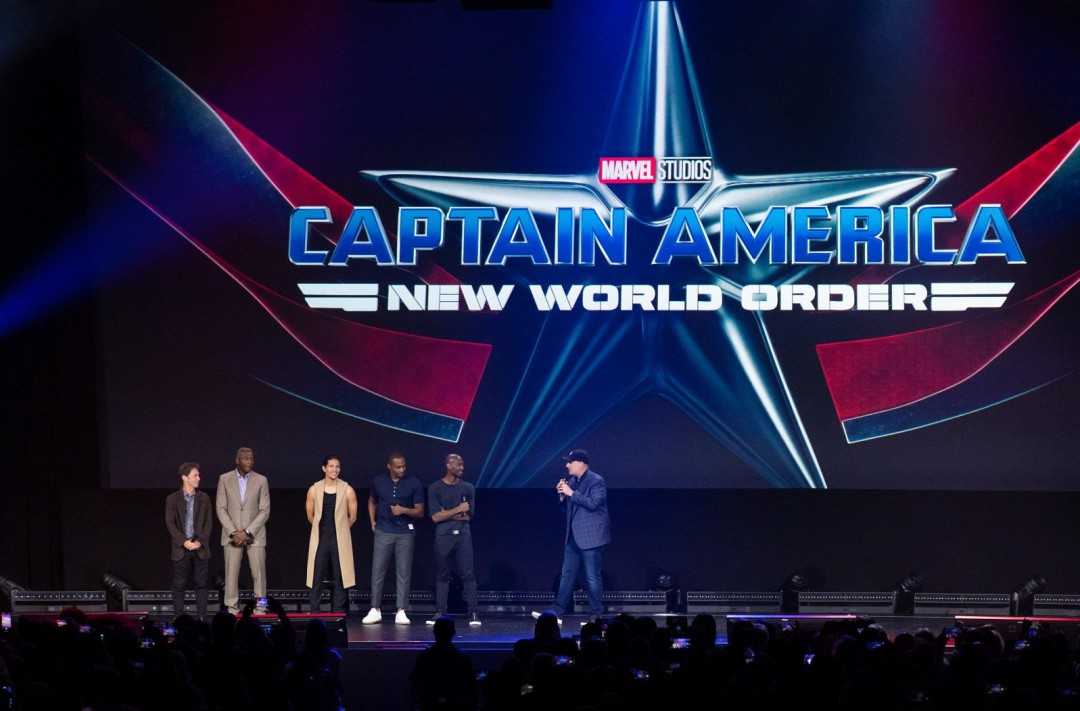 其中一项是关于漫威电影《美国队长4》的官方信息。《美国队长4》副标题为“New World Order”,暂译“新世界秩序”,暂定于2024年5月3号上映。如现场照片所示,凯文·费奇为主持人,《美国队长4》导演为“朱利叶斯·约拿”。