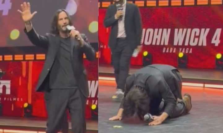 基努·里维斯站了起来,向粉丝们表示了感谢,这段视频已经被点阅了340万次,不少网友直言不讳道:“只有基努·里维斯才会这么做,尤其是下跪,90%的演员都做不到这一点。”