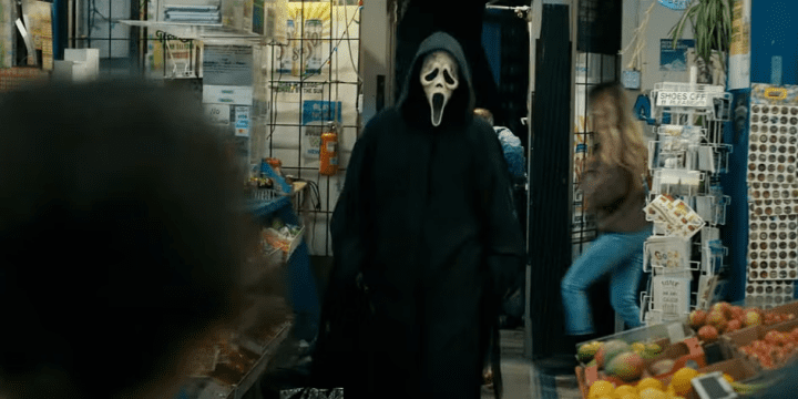虽然在2022年的《尖叫》中出现的鬼脸肯定是一个致命的敌人,杜威令人震惊的死亡场景充分表明了这一点,但拥有一个更具攻击性的杀手版本可以让《尖叫6》感觉像是前一部电影有趣的自然延伸。在《惊声尖叫》系列之前的作品中,“鬼脸”有时会在公共场所袭击受害者,但杀手在大量人群中如此肆无忌惮地袭击受害者,这种情况相对罕见。在《惊声尖叫6》的预告片中,杀手跟随山姆(巴雷拉饰)和塔拉(奥特加饰)进入一家繁忙的杂货店,然后杀死了店主和一名无辜的旁观者,这也许是新幽灵脸的心态最好的展示。