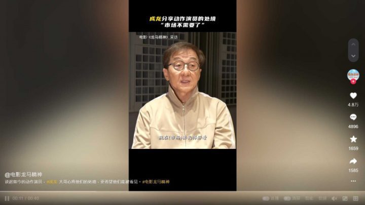 成龙在结尾还积极地说,期望有一日能够回归自己的年代,让更多真正有能力、有能力的武打明星走上台前被人看到。虽然对目前的市场状况很不满意,但成龙仍然活跃于武打片领域,比如,2017年度的《功夫瑜珈》和网络热议颇高的《龙马精神》。