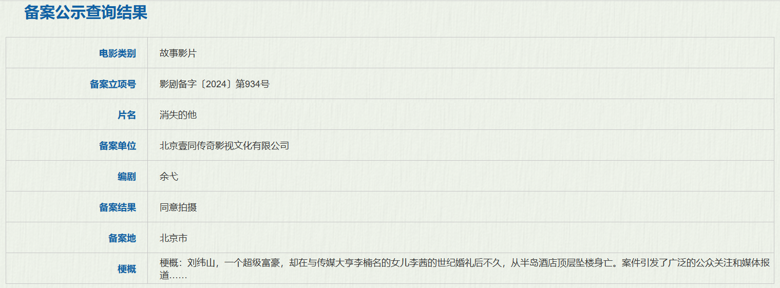 编剧:余弋,备案单位:北京壹同传奇影视文化有限公司