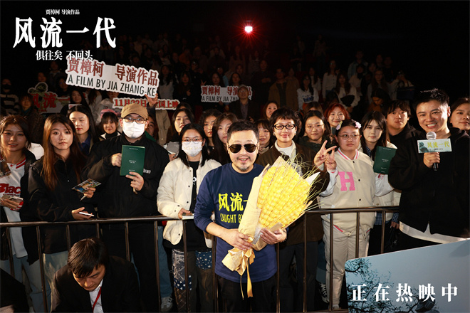11月21日,贾樟柯导演亲临西安多所影院,与陕西各高校师生及影迷进行了深入交流。在此期间,《风流一代》的点映与预售总票房成功突破111万元大关!面对这一成绩,贾樟柯导演兴奋地表示:“原本预期票房在七八十万左右,只要有一两万名观众愿意进影院支持就满足了,没想到在正式公映前就已经超额完成目标。”随后,现场观众以西安方言集体呼喊:“莫愁前路无知己,天下谁人不风流。”