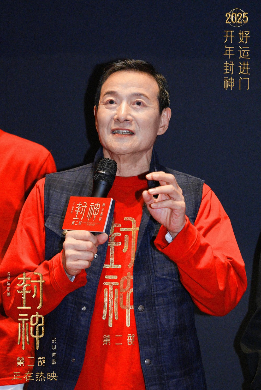 费翔在路演中同样收获了满满的感动,他笑称自己多了许多“勇敢的儿子和女儿”,并提及了一位在路演现场喊他“父王”的2岁小朋友。费翔表示,在春节这个阖家团圆的日子里,看到许多家庭一起走进影院观看中国神话故事,感受传统文化的魅力,让他尤为感动。娜然也被观众的热情所感染,真诚感谢每一位支持电影中角色的观众。首次参与电影路演的吴兴国分享了独特的感受,接演《封神第二部》不仅是他十年后重返大银幕的作品,更是他与传统文化的一次重逢。作为传统戏曲出身的演员,吴兴国对路演现场收到的非遗传承人赠送的“闻太师猴加冠”礼物印象深刻,他说:“看到中国传统艺术得到更多人的传承和弘扬,是一件非常开心的事。”夏雨也在现场感谢观众对《封神第二部》所有角色的喜爱,并强调:“正是有了观众的支持与热爱,我们的创作和表演才更有意义。”