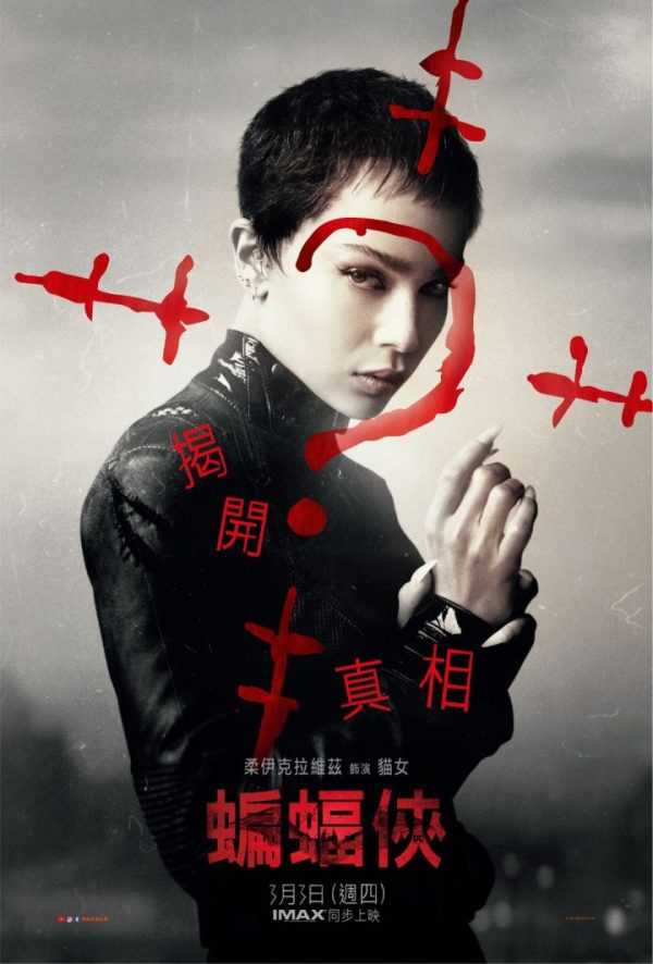 猫女绝对是蝙蝠侠神话不可或缺的一部分,她是第一个让他感到不知所措的人,也是蝙蝠侠爱慕时间最久的角色。佐伊·克罗维兹表示,她非常享受导演马特·里夫斯呈现猫女与蝙蝠侠两个角色变线人生的方式:“他们之间爱恨交织,而爱与恨的分界线非常模糊,他们都相信正义,都为自己的信念而战,也不害怕为了信念而牺牲性命,只不过全然不同的成长背景让他们对于什么是正义可能有着不同的解读。”