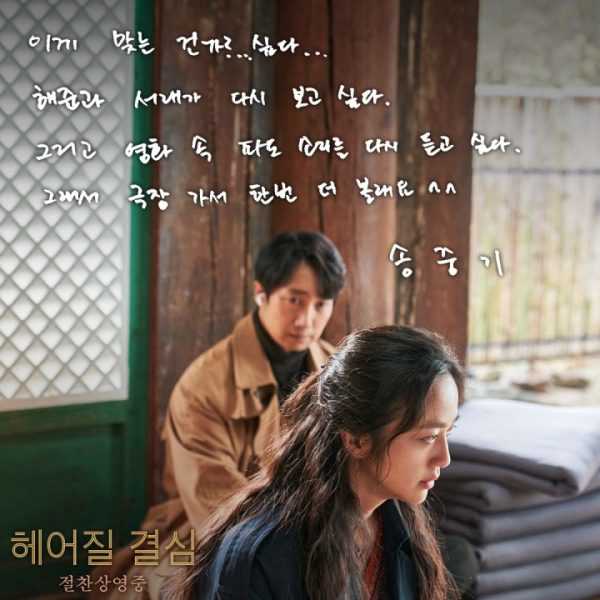 另外,之前曾与奉俊昊导演合作过《杀人回忆》、《汉江怪物》的朴海日,这次终于和另一位大导朴赞郁导演合作《分手的决心》。对于和两位电影巨匠合作的感想,朴海日表示:“他们两位是电影领域中的好伙伴,我知道他们彼此是互相照顾、尊重对方的关系。在拍摄《分手的决心》的第一天,我因为想感受一下拍摄现场的气氛,就比原定时间提早到现场,但我十分苦恼该如何和朴赞郁导演相处,于是就传了信息询问奉俊昊导演:㏶请告诉我接近朴赞郁导演的诀窍㏷,结果奉导演回我:㏶朴赞郁导演是名真正的大师、巨匠,不论你展现什么样的演技,他都会全盘接受的,别担心,就愉快地拍摄吧!㏷”朴海日说因为有奉俊昊的这段话,彻底消除了他的不安。