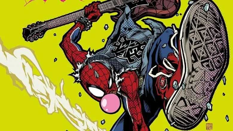 可以看到朋克蜘蛛侠一直是反政府的,但他的目的却是为了全人类。他与他的同伴们,以及那把能够发射冲击波的吉他,与奥斯本总统展开了一场战争。显然,这是一场旨在消灭那些压迫人民的恶势力的战争。