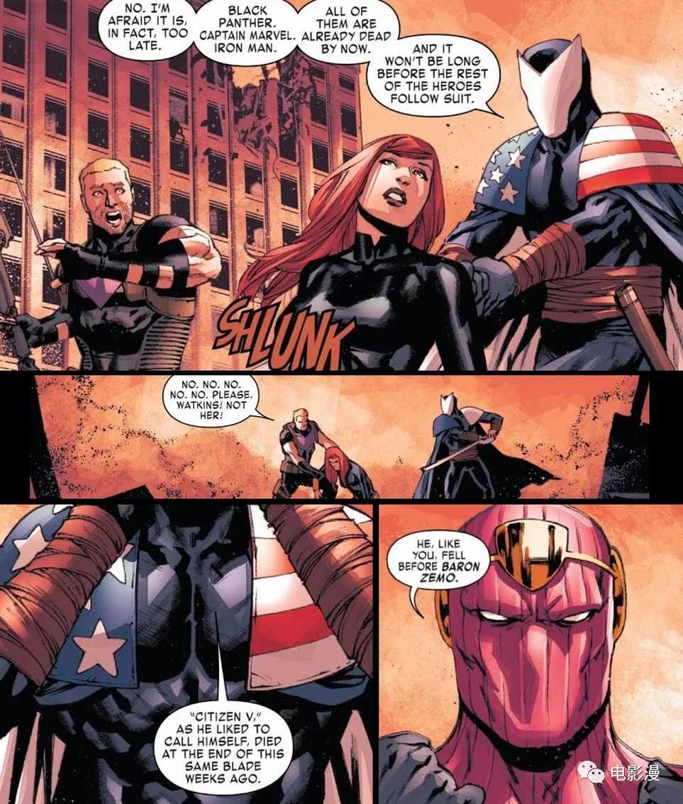 这个所谓的盟友就是乔装打扮的泽莫男爵,他用出其不意的手段冷血地杀死了黑寡妇娜塔莎。