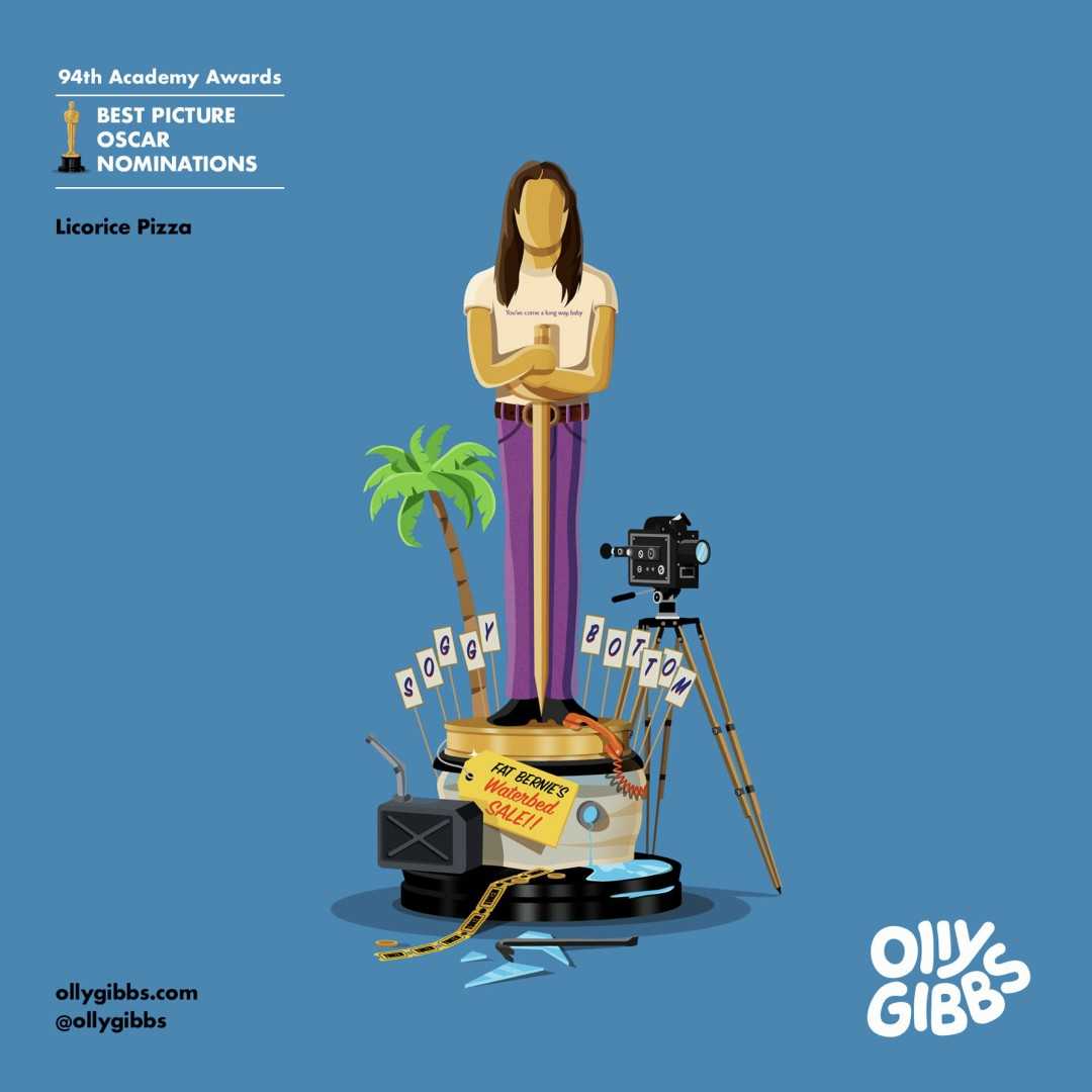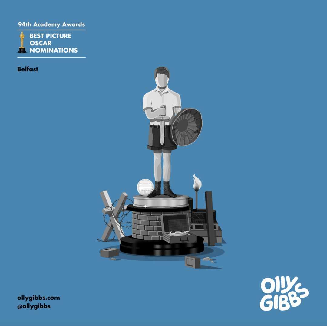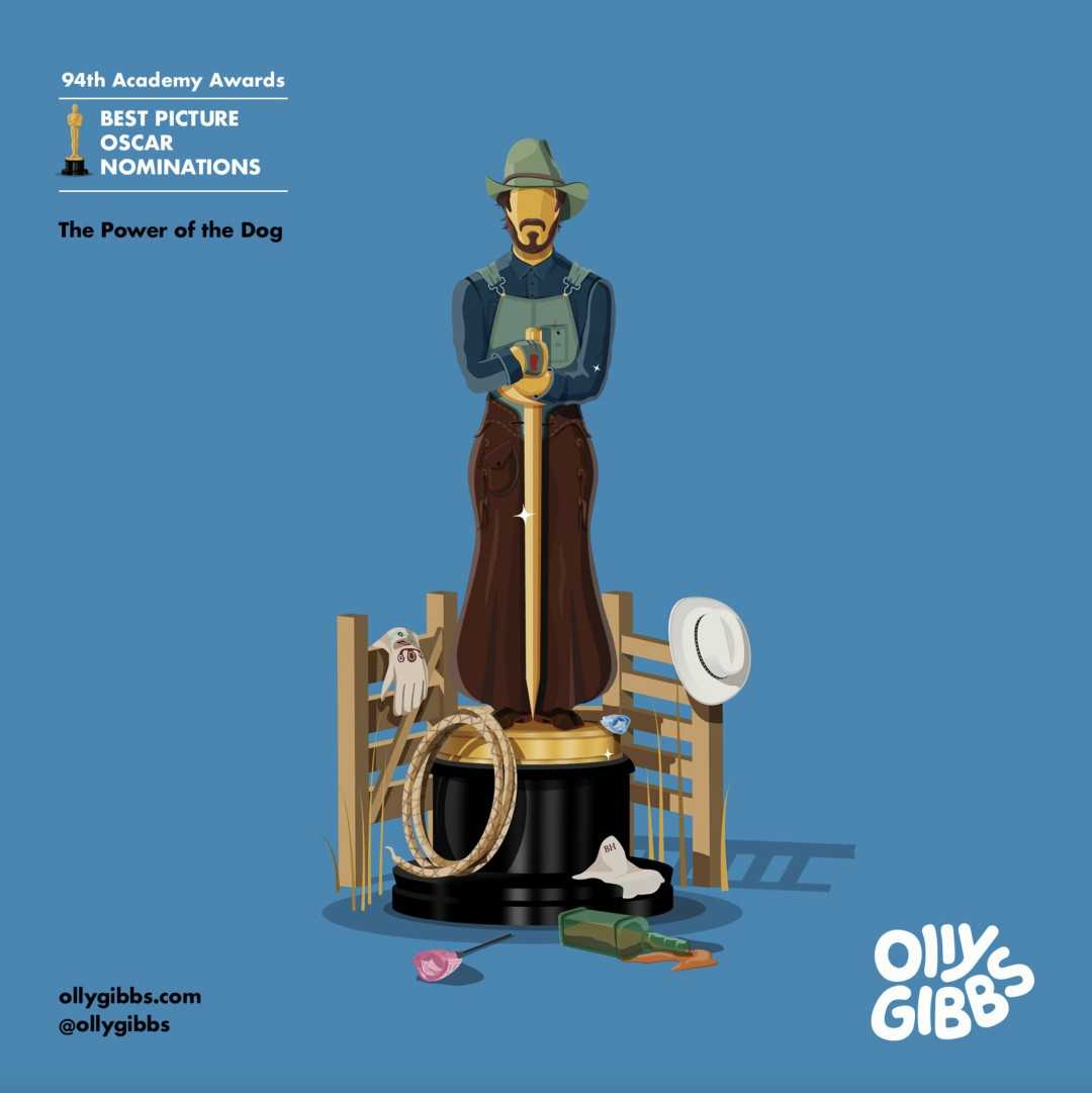 知名艺术家Olly Gibbs为今年第94届奥斯卡10部入围最佳影片设计的小金人海报大赏~