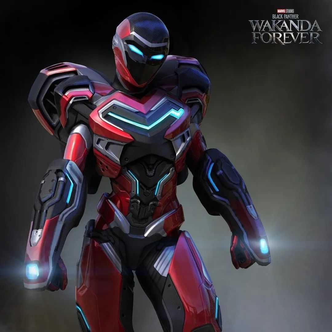 PhilSaunders,漫威电影公司的可视化设计师,与大家共享了《黑豹2:瓦坎达万岁》中的“钢之心”威廉姆斯的“Mark II”金属盔甲的概念和3D建模。他说这个系列是对托尼·斯塔克和雷里的爸爸的敬意。