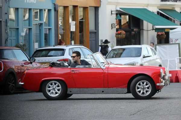 多米尼克·库珀开着心爱的敞篷红车车出现在伦敦街头