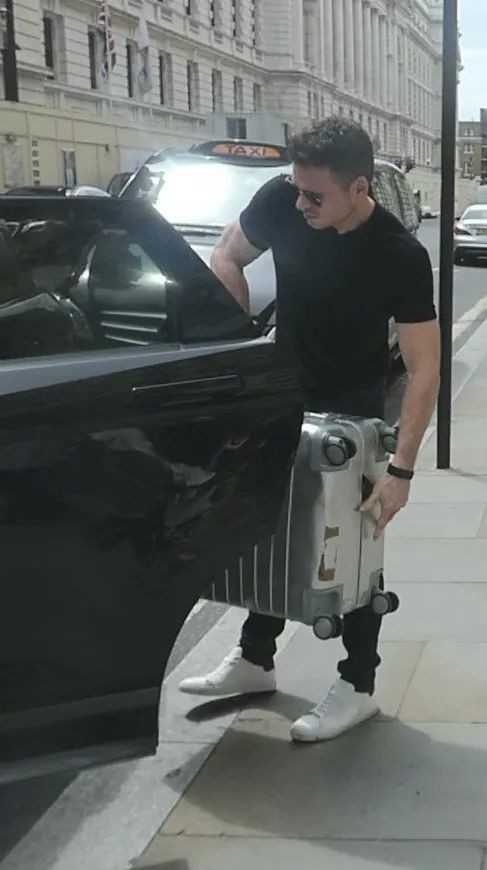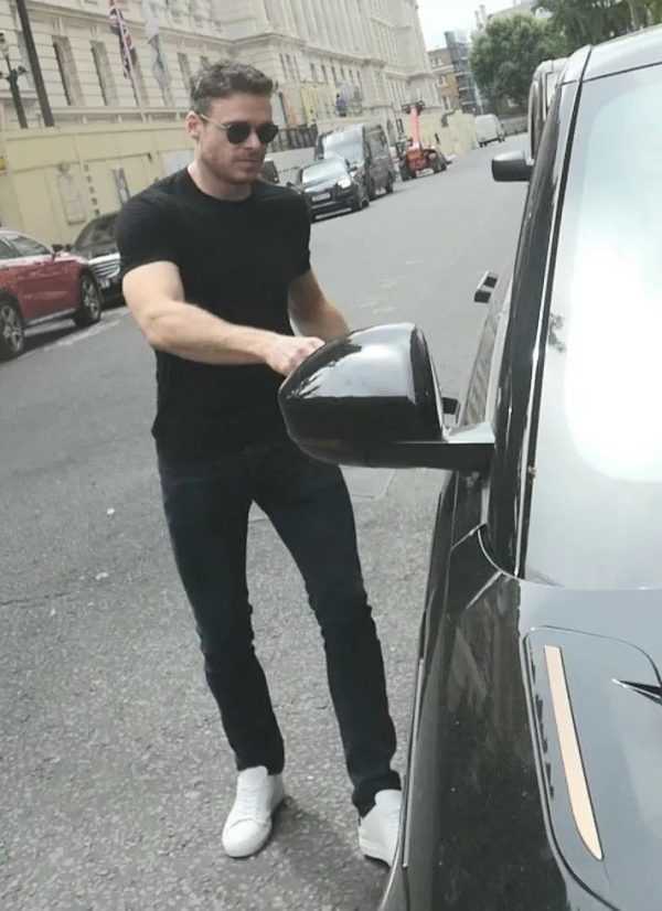 街拍丨理查德·麦登从伦敦某酒店退房后离开