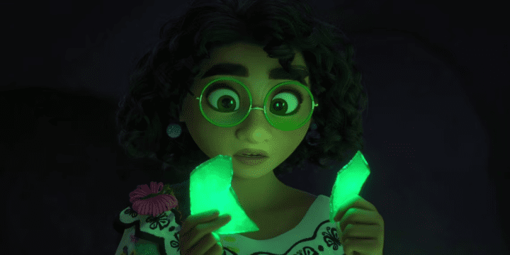 推特分享了《魔法满屋》的镜头,主角米拉贝尔·马德里加尔手持魔法神秘碎片。将该图像与一个广角镜头进行比较,镜头显示动画师必须将米拉贝尔的手臂拉伸到异常的长度,以获得实际上在电影中的合适构图。