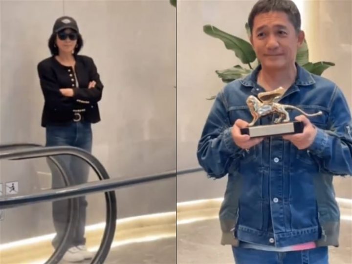 另外,梁朝伟手持金狮奖的奖杯,在记者面前被要求合影留念。没想到,镜头一转,刘嘉玲双手环胸,“盯场”,看得网友们哈哈大笑,仿佛看到了“孩子拿了奖,母亲欣慰的目光”。