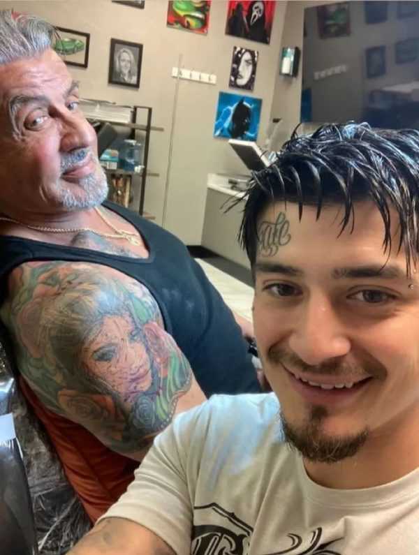 另外,前几天史泰龙还把原本手臂上纹妻子头像的纹身给洗掉了,并且用养的宠物狗的头像重新盖住了。